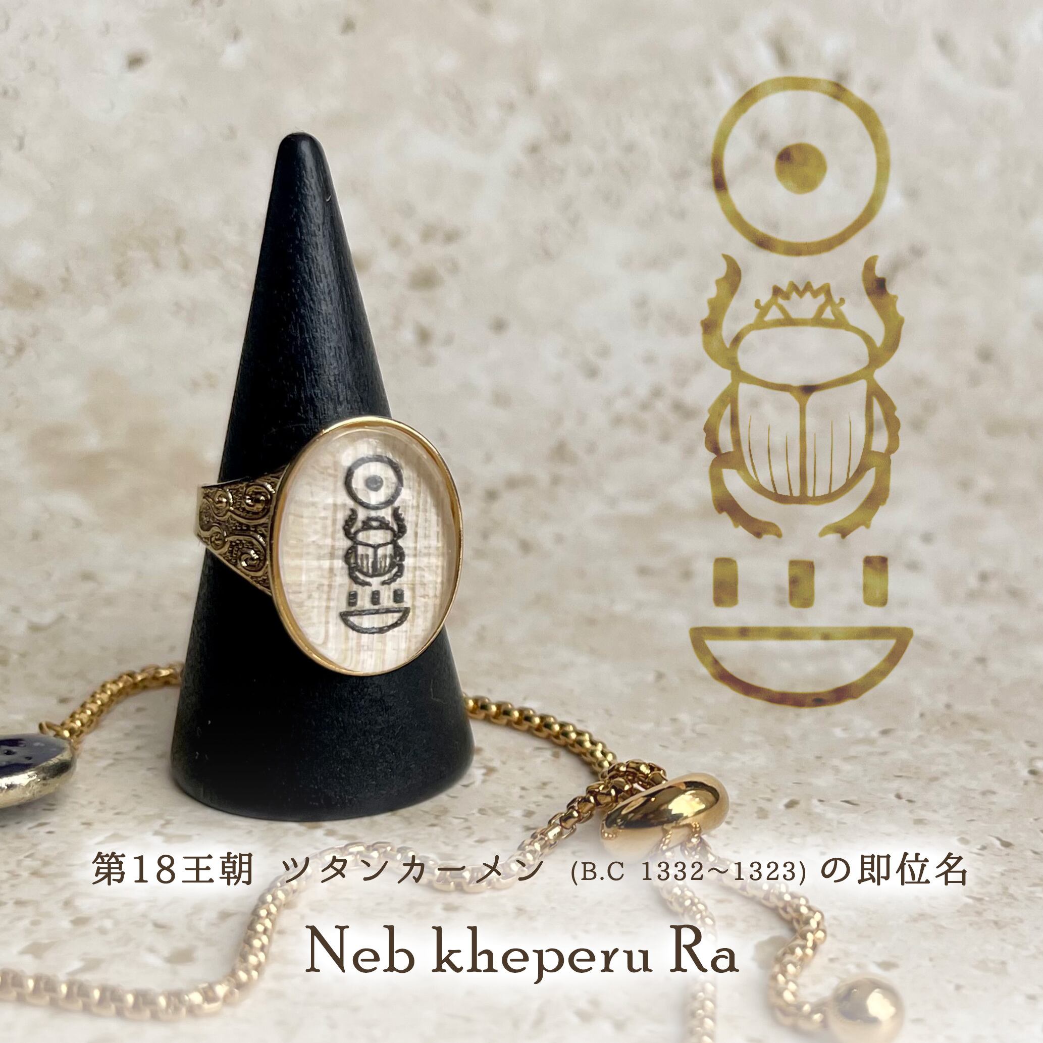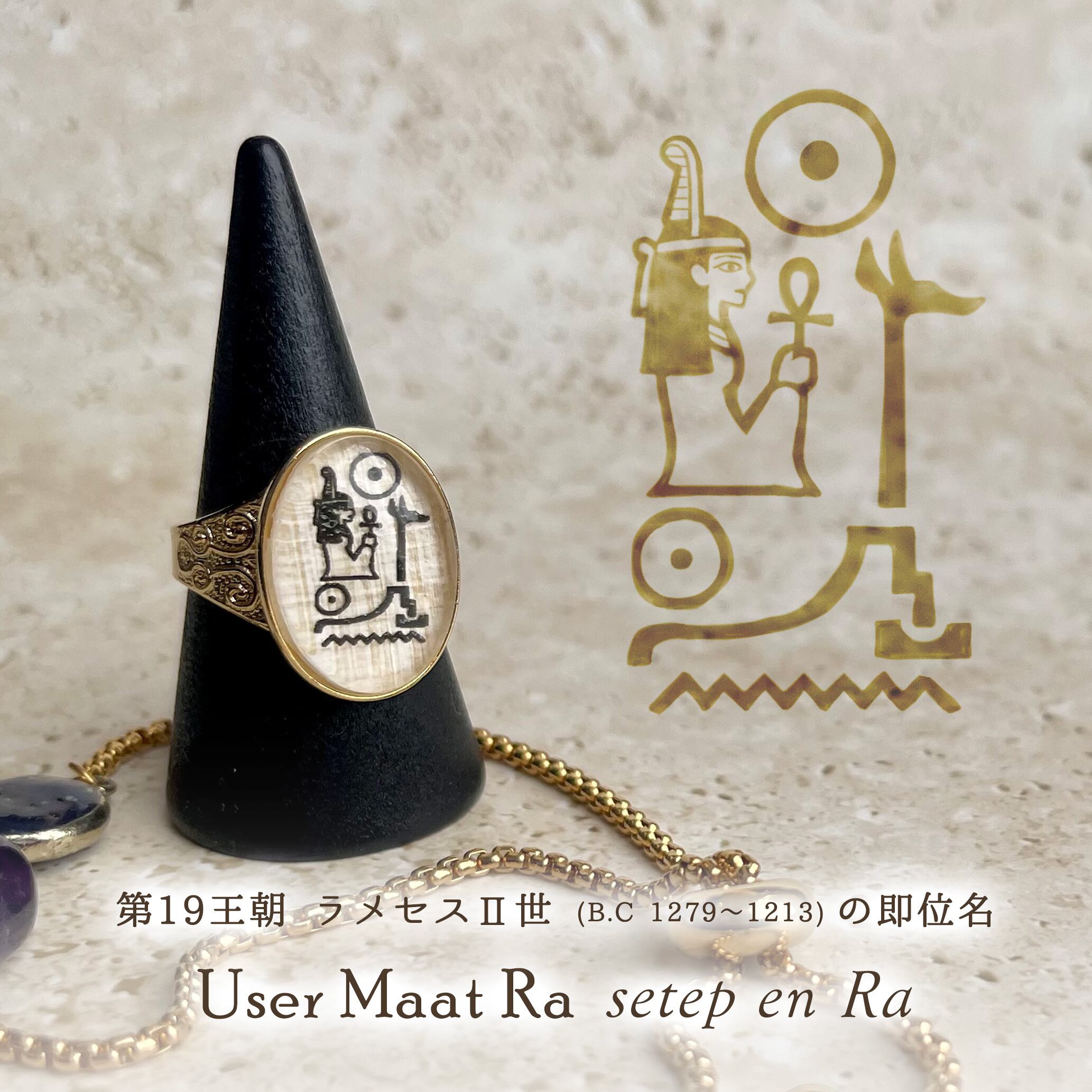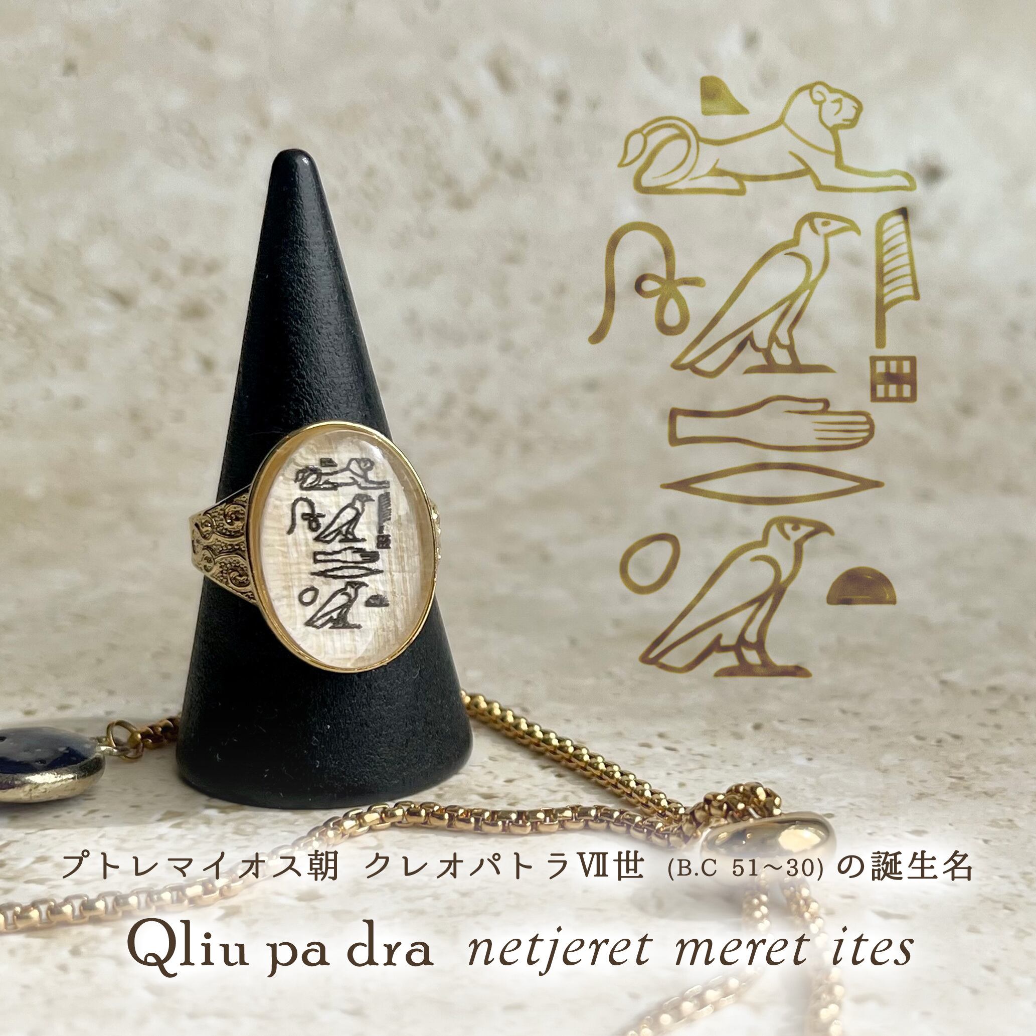 博物館や展覧会などで、王名のヒエログリフが刻まれたリングを見たことがある方も多くいらっしゃると思います。そんなリングを現代風にアレンジしたのがこちらの作品です。