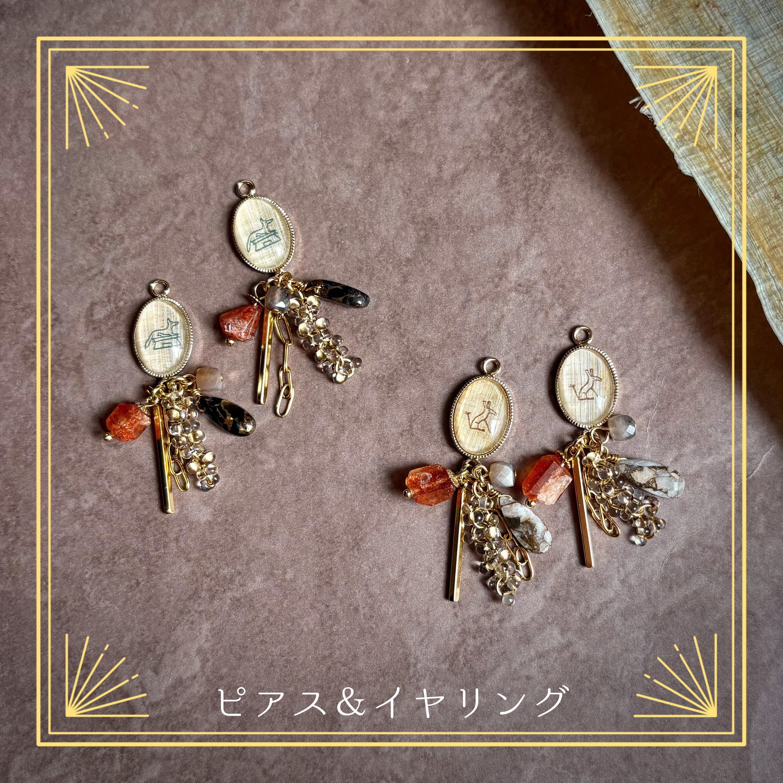 天然石は、サンストーン、ムーンストーン、そしてコッパーオブシディアンやコッパーカルサイトを使用しています。