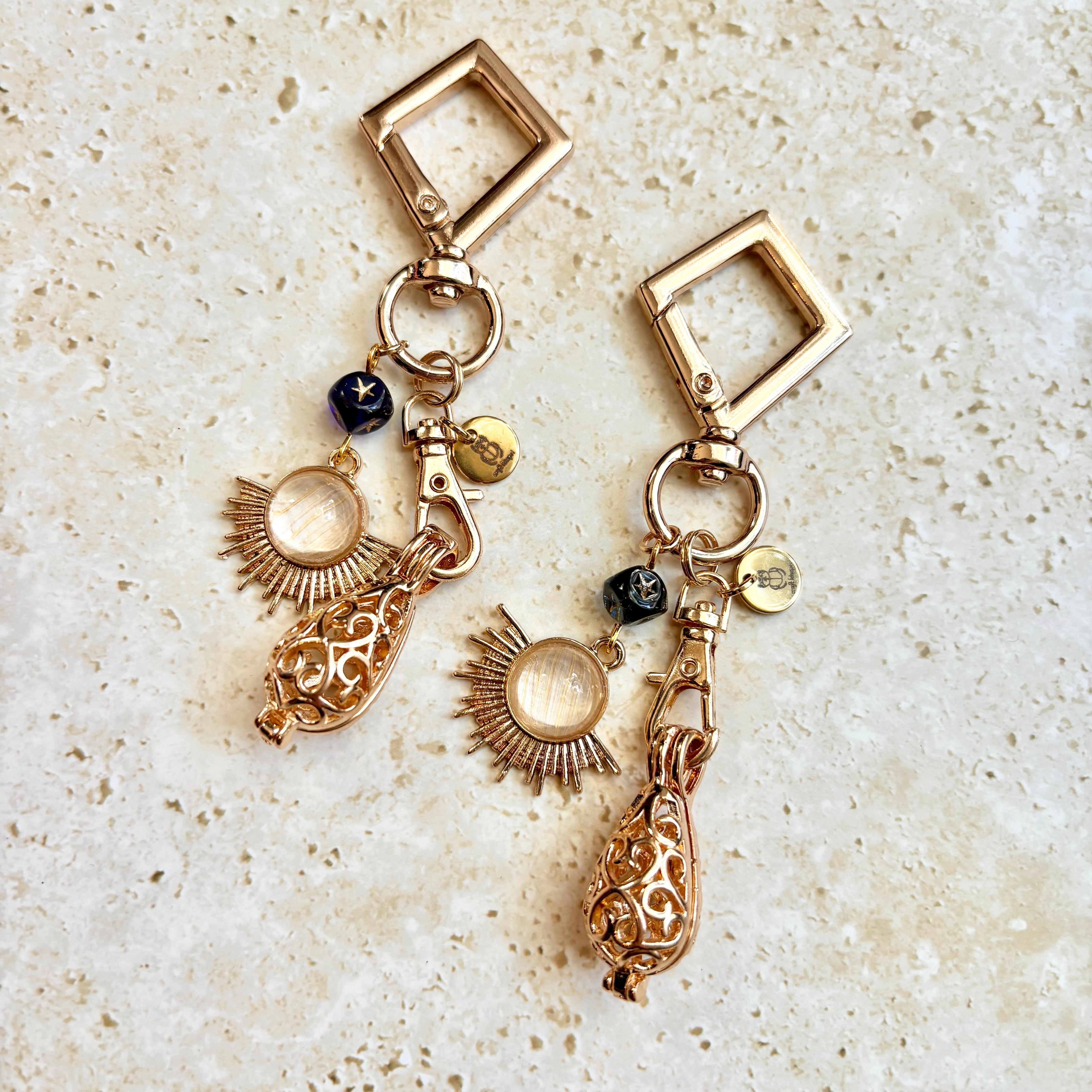 星のヒエログリフをあしらったビーズを合わせ、上品なチャームに仕上げました。