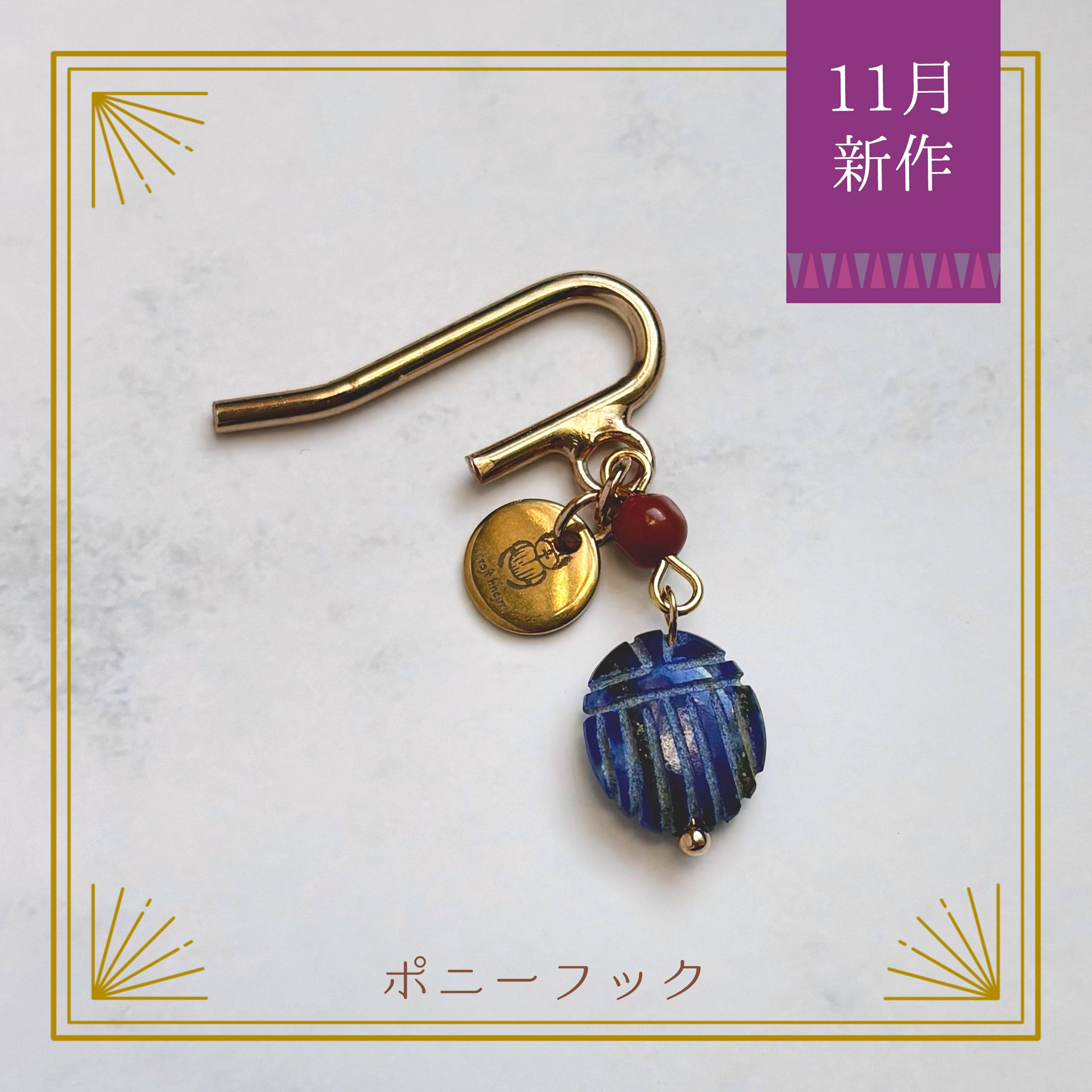 “kpr” - ラピスラズリのスカラベが揺れるポニーフック Lapis Lazuli scarab Pony hook