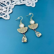 【限定1点】パピルスと金箔水晶の耳飾り - "wadj" Papyrus accessory
