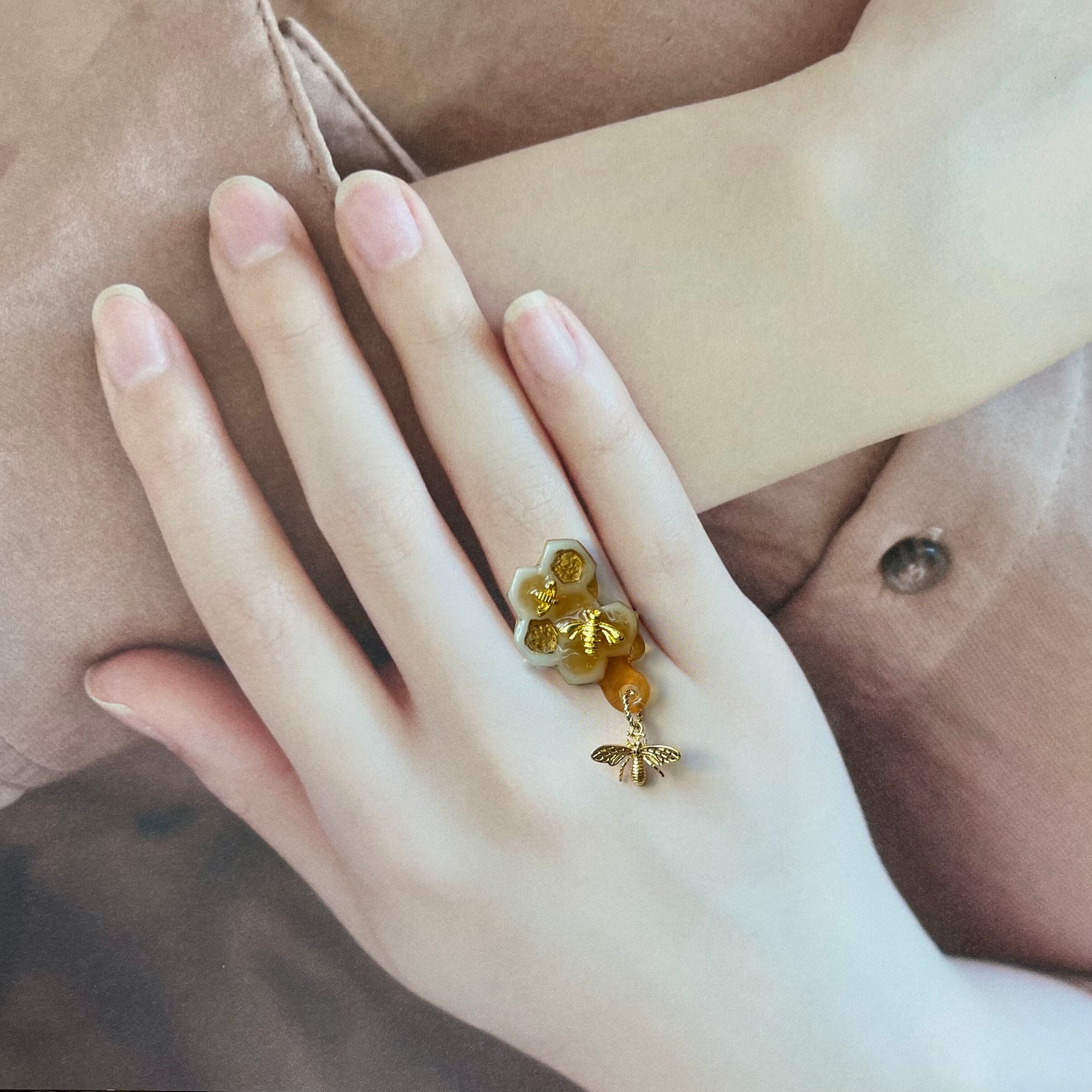 "bjt" honeycomb - ring 蜂が群がる巣蜜のリング