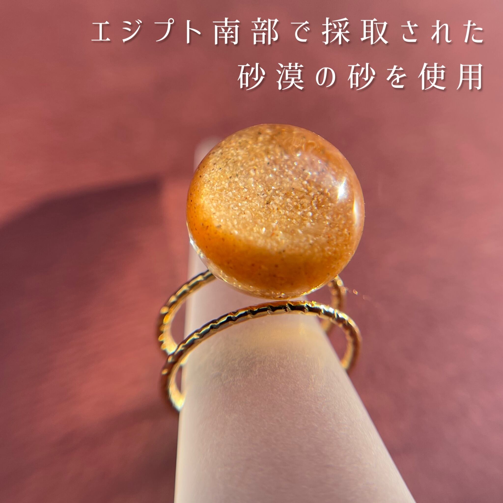 エジプト南部で採取された砂漠の砂を閉じ込めたリングです。