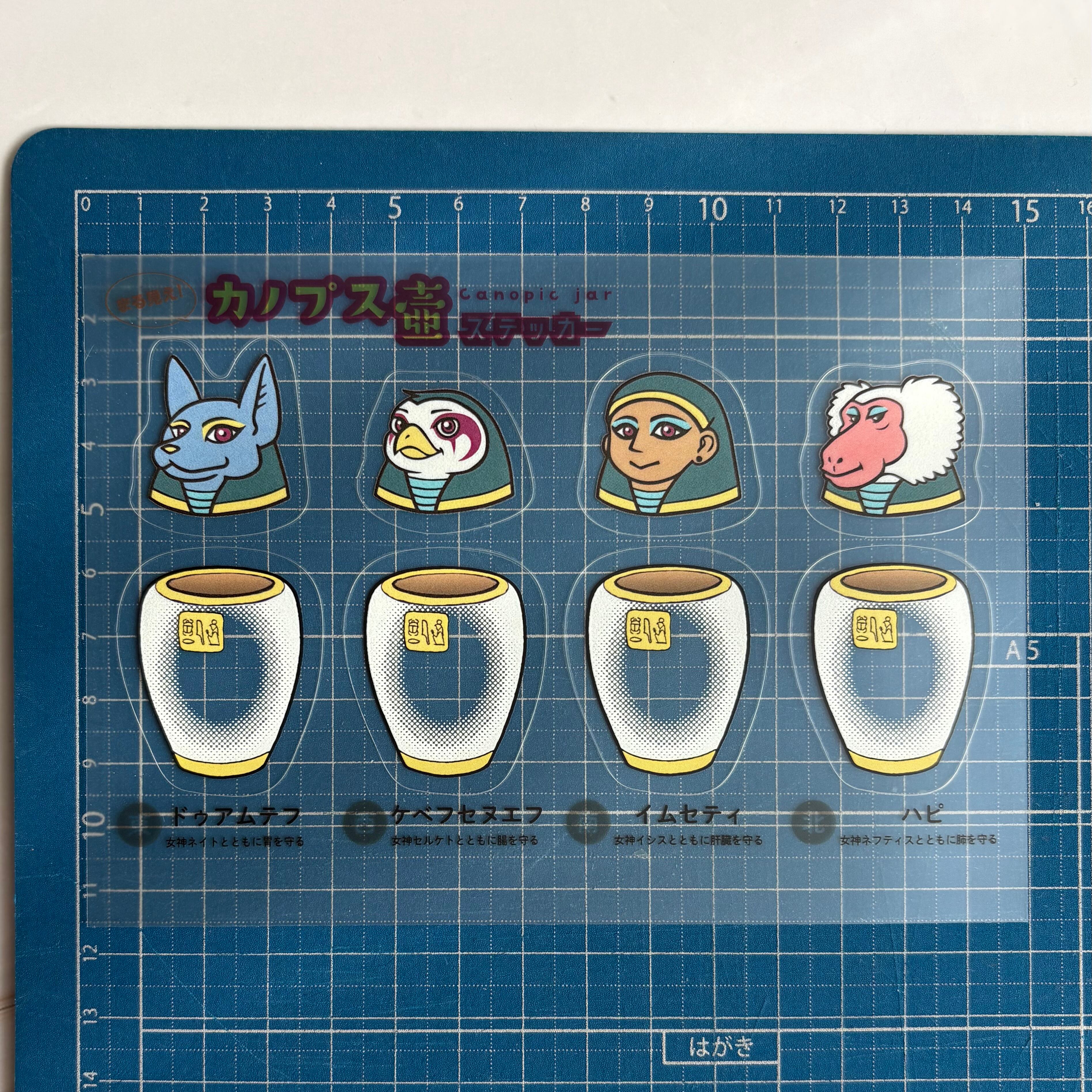 ミイラづくりの際に、取り出した内臓を入れる「カノポス壺」をオリジナルステッカーにしちゃいました!