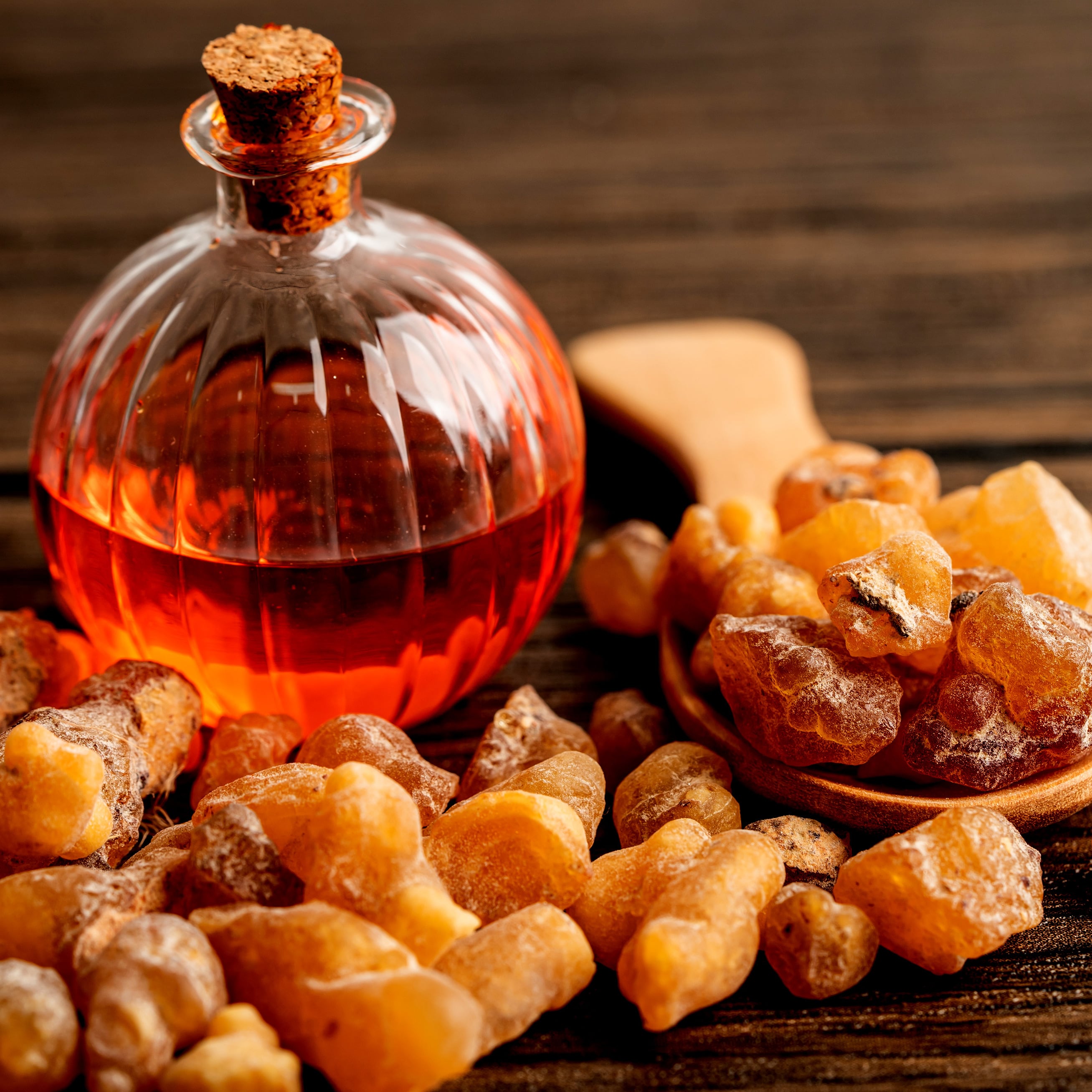 フランキンセンスは、古代エジプトに伝わる《7つの聖油》のレシピの中でも頻繁に使われていた素材です。神殿では毎朝焚かれていたそうで、ミルラとともに、古代エジプトでは欠かせない香りでした。またこちらもミルラと同じく、キリスト誕生の際に贈られたと言われており、今でも教会ではフランキンセンスが焚かれています。「乳香」とも呼ばれます。