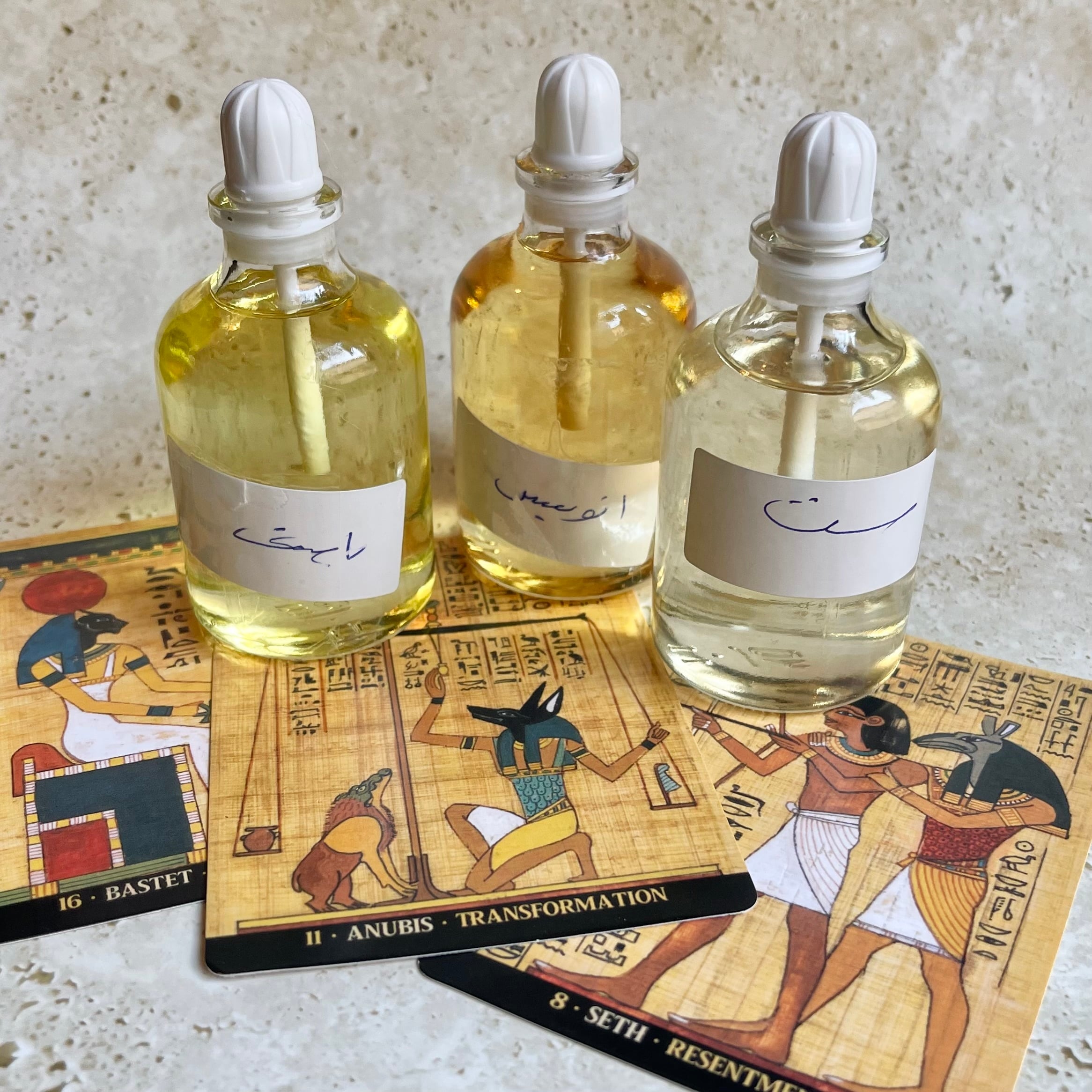 ・エジプト香油は古くから肌や髪につけることでも香りを楽しまれていたオイルですが、当ブランドでは「雑貨」として販売しております。肌や髪につけたり、口に入れたり、飲んだりするご使用を目的としたものではありません。アレルギーや体調不良等が起こった場合、当ブランドでは責任を負いかねます。ご自身の責任でお楽しみください。